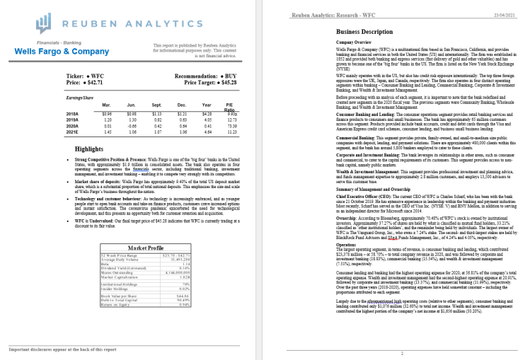 Using fundamental valuation techniques to value Wells Fargo, one of the “big four” US banks.